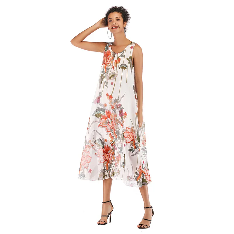 Sale 2019 summer new women's Chiffon sleeveless print dress European and American popular Bohemian holiday dress party dress