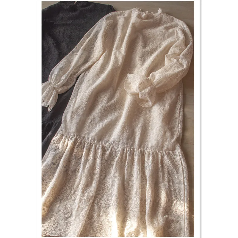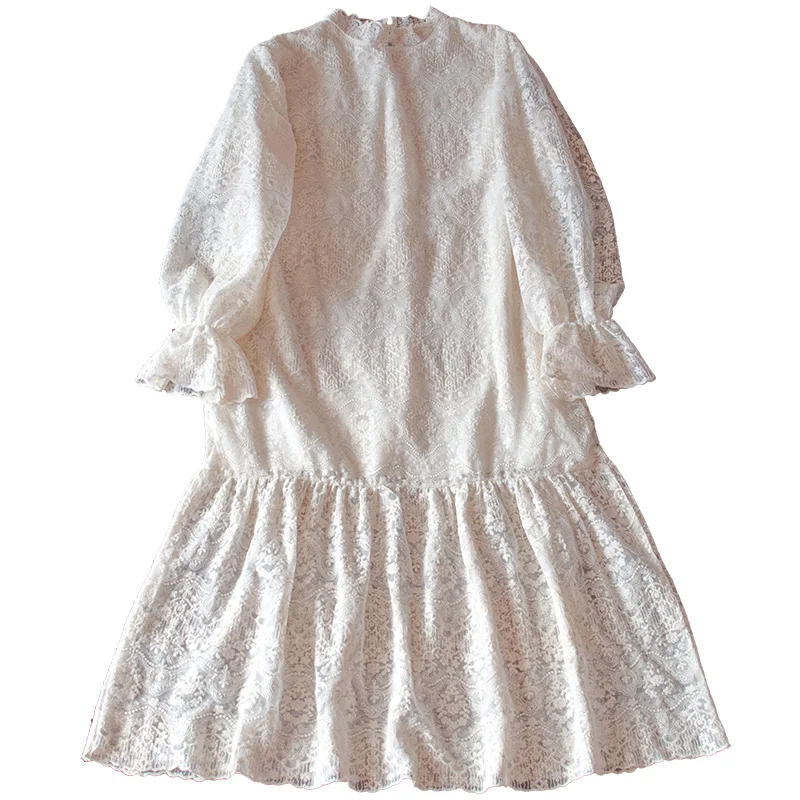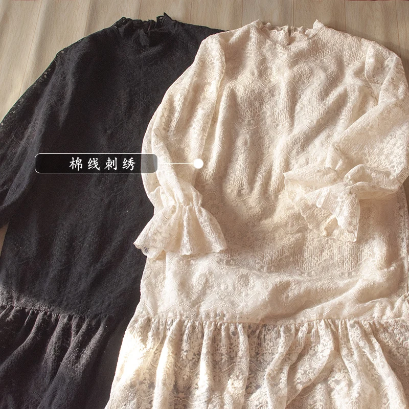 Images of Free Shipping 2020 New Fashion Summer Embroidery Long Sleeve 100% Cotton One-piece Long Knee Length Dresses White Black Dresses :