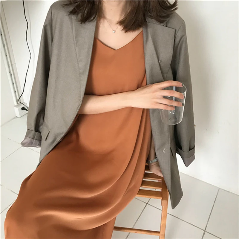 Images of GOPLUS Summer Women's Dress Solid Black V-Neck Sleeveless Mid Calf Long Dresses clothing for women Vestidos Ropa Mujer C8354 :