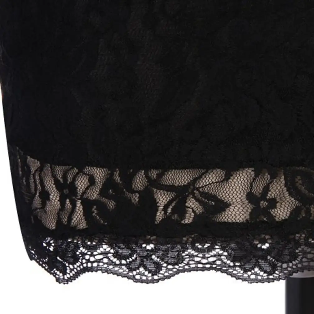 Images of Black Deep V-neck Lace Dress Summer office lady Lace Slim Bodycon Shealth Dresses Vestidos Crochet Elegant strength dress 2019 :