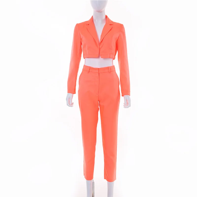 New Women Solid Short Blazer Two Piece Women Elegant Turn-down Collar Long Sleeve Jackets with Pencil Pants Slim Blazer Suit Women