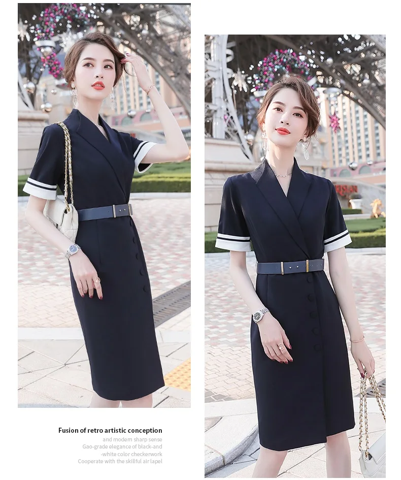 Sale Female Elegant Formal Office Work Wear New 2020 Summer Women Dresses Short Sleeve Office Ladies Knee Length Dress (Blet Included