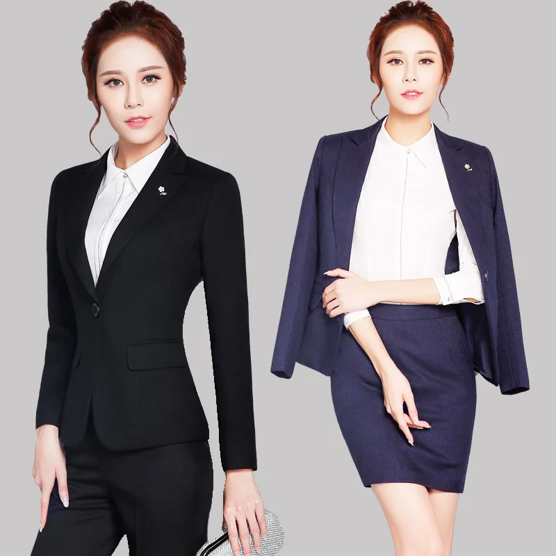 Images of Gray Black Women's suits new temperament fashion single buckle decoration body skirt women's two piece suit set Business Skirt :