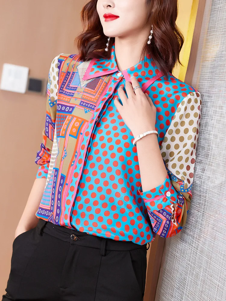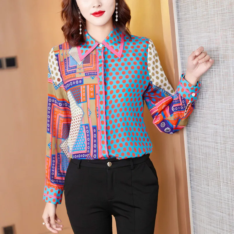 New Feminine Clothes Women's Blouse 2020 Asymmetric Shirt Long Sleeve Womens Tops and Blouses Print Turn-down Collar Office Lady