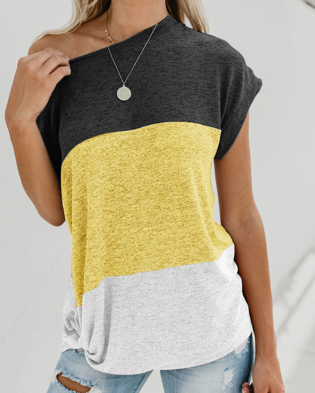 Best Offer 2019 Casual Women Blue Red Patchwork Short Sleeve Women Shirt Women Loose Summer Tops Women Blouse Shirt