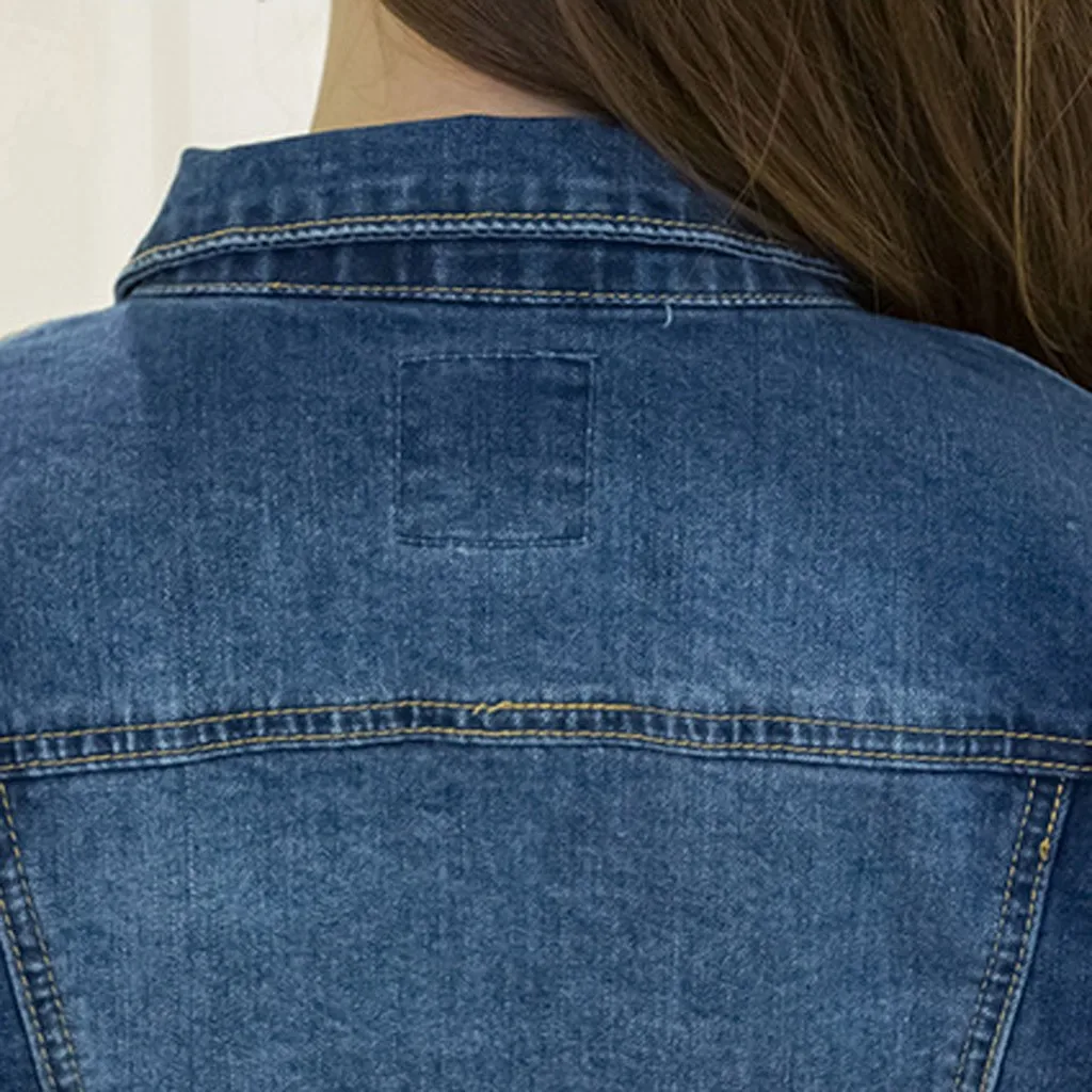 Promo Short Denim 2019 Autumn Winter Jackets Women White Wash Long Sleeve Vintage Casual Jean Jacket Bomber Denim Coat Tattered#3
