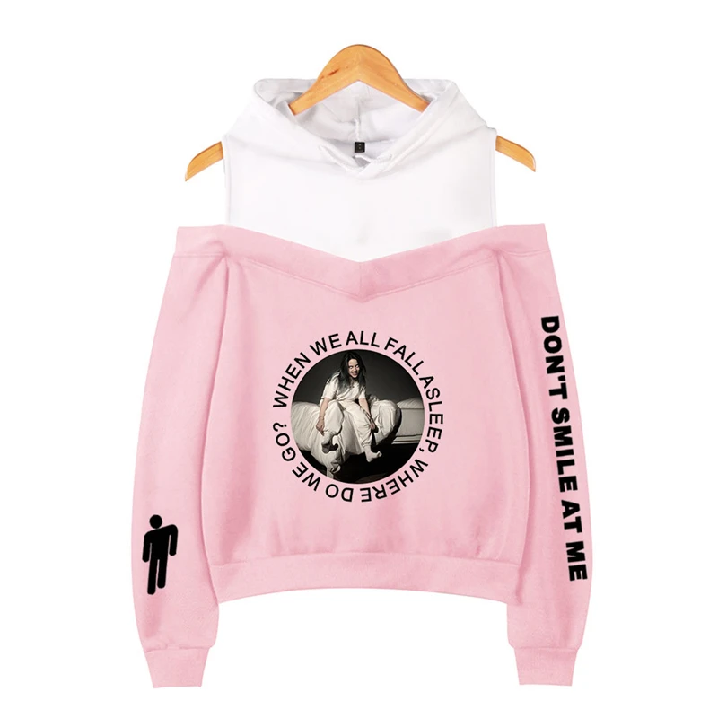 Best Offer Billie Eilish sexy Off Shoulder Hoodies Women Autumn Winter New Arrival Hot Sale Pullover Fashion Hip Hop Streetwear Hoody