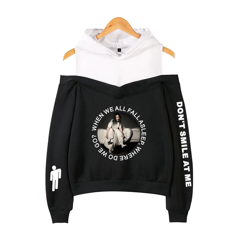 Images of Billie Eilish sexy Off Shoulder Hoodies Women Autumn Winter New Arrival Hot Sale Pullover Fashion Hip Hop Streetwear Hoody :