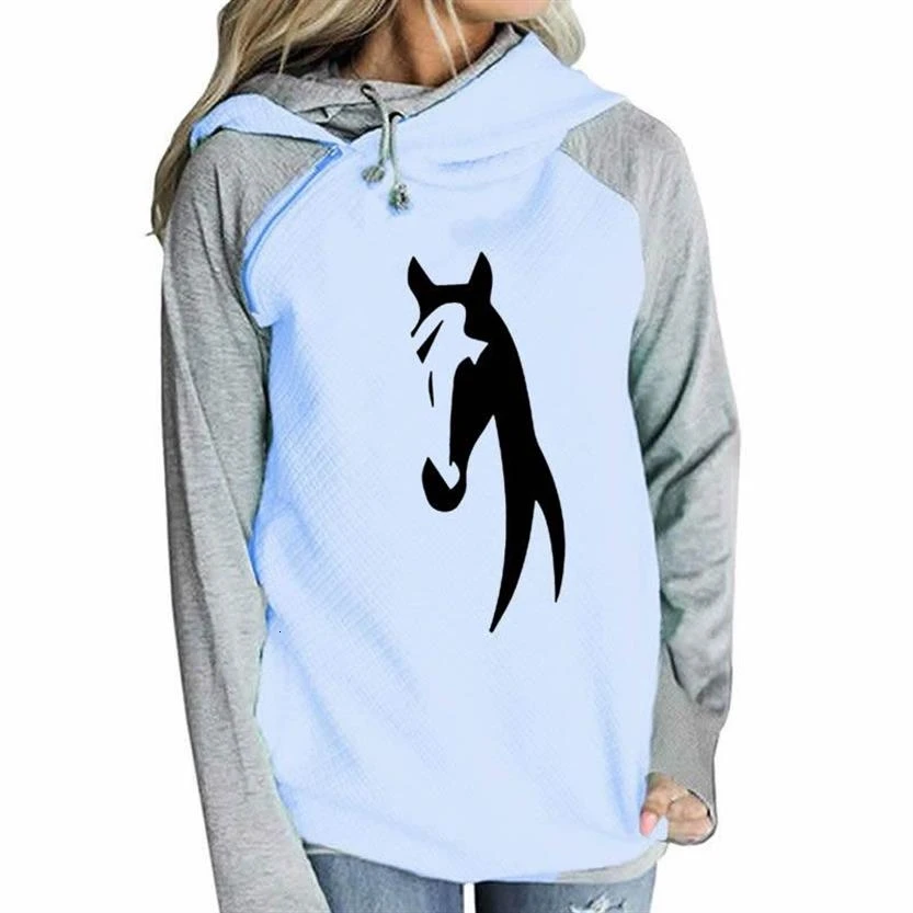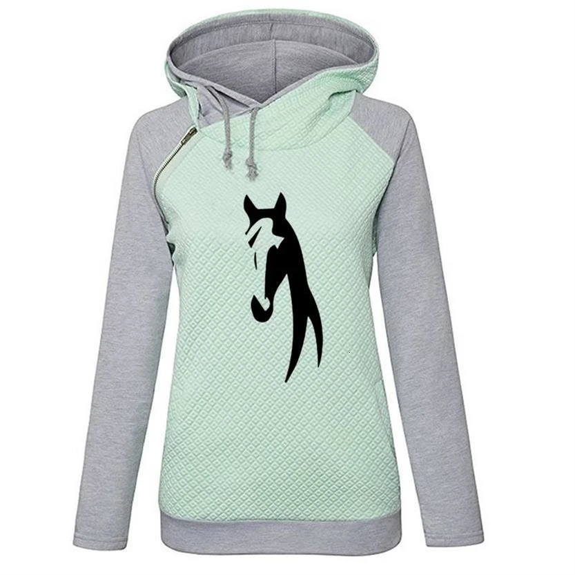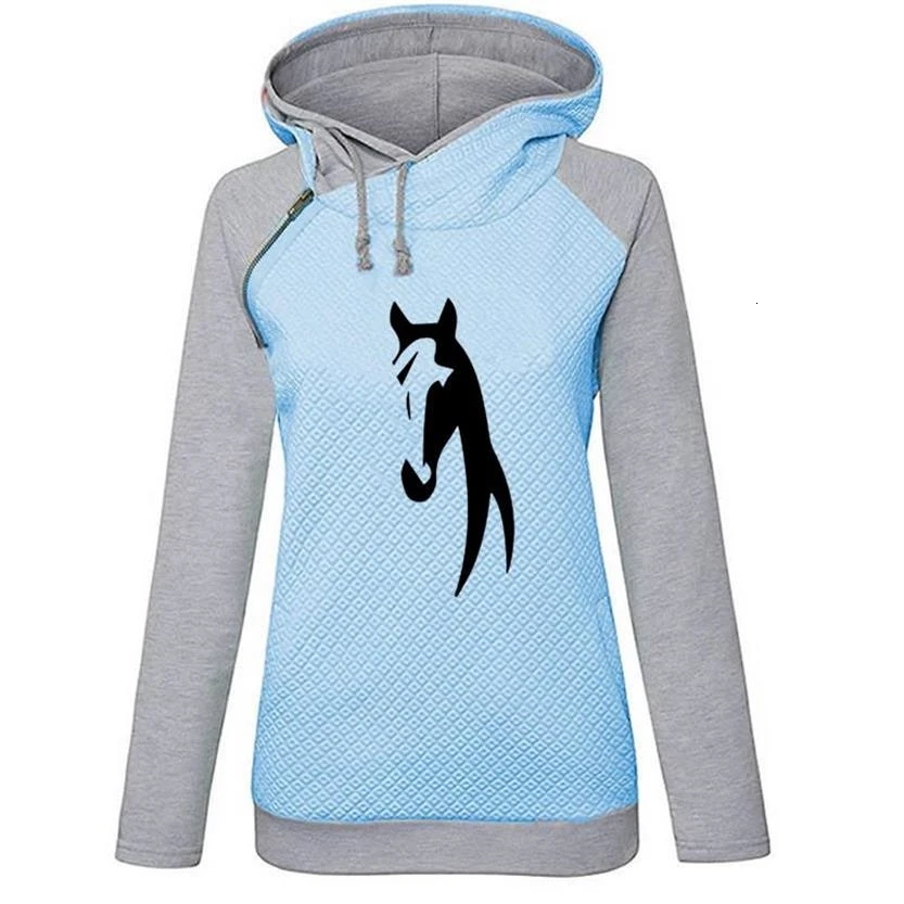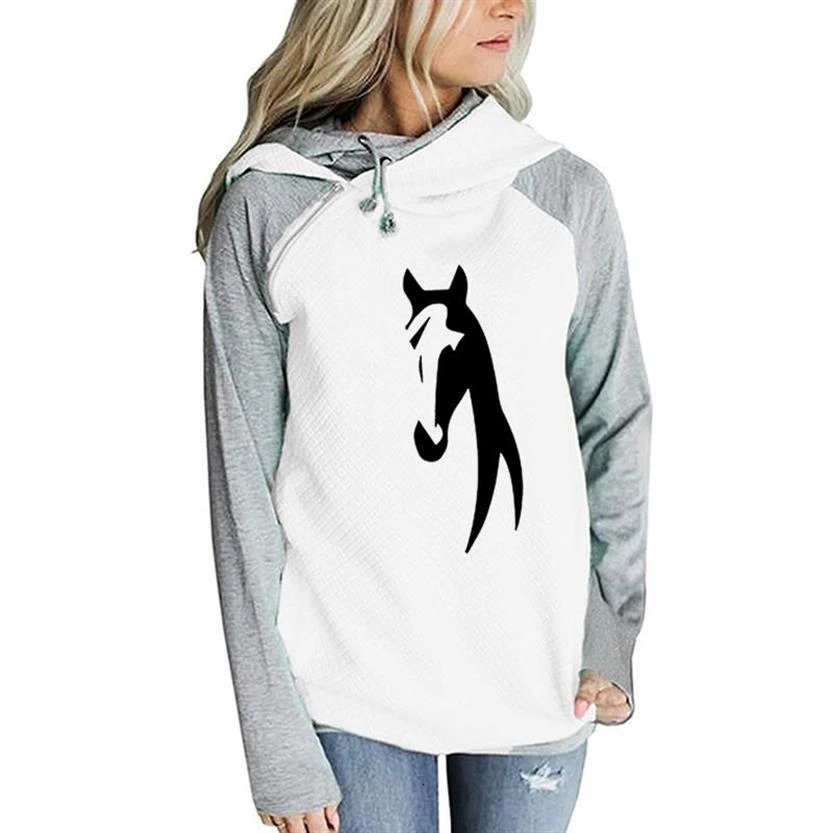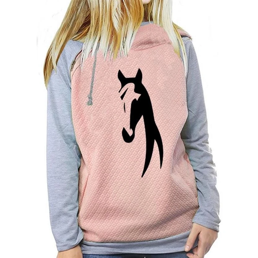 New HORSE Letters Print Hoodies For Women Zipper Decoration Sweatshirt Femmes Kawaii Hoodies Women Pockets Pattern Clothings