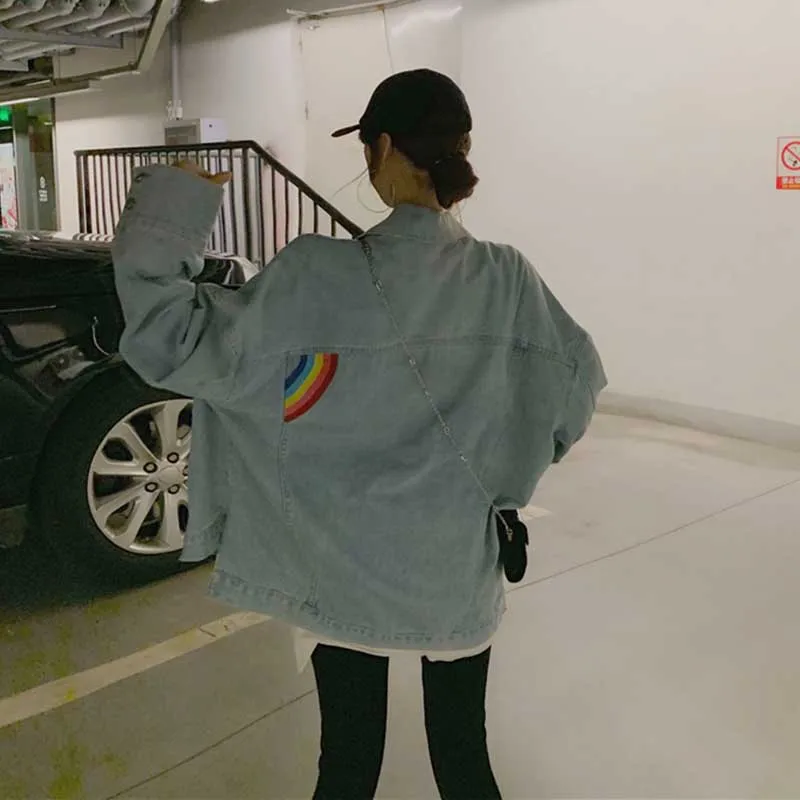 Images of Cowboy Short Coat Korean Version Girls Lady Loose Spring Fall Jacket Fashion Lace-up Diamond Slim Jeans Top Womens Denim Coats :