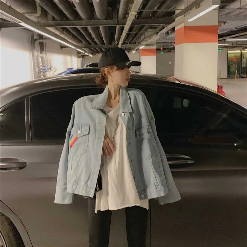 New Cowboy Short Coat Korean Version Girls Lady Loose Spring Fall Jacket Fashion Lace-up Diamond Slim Jeans Top Womens Denim Coats