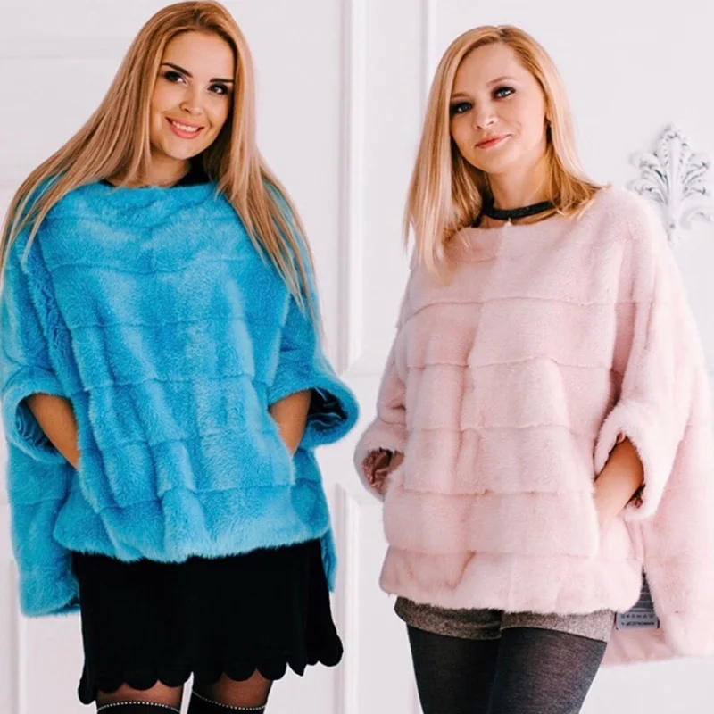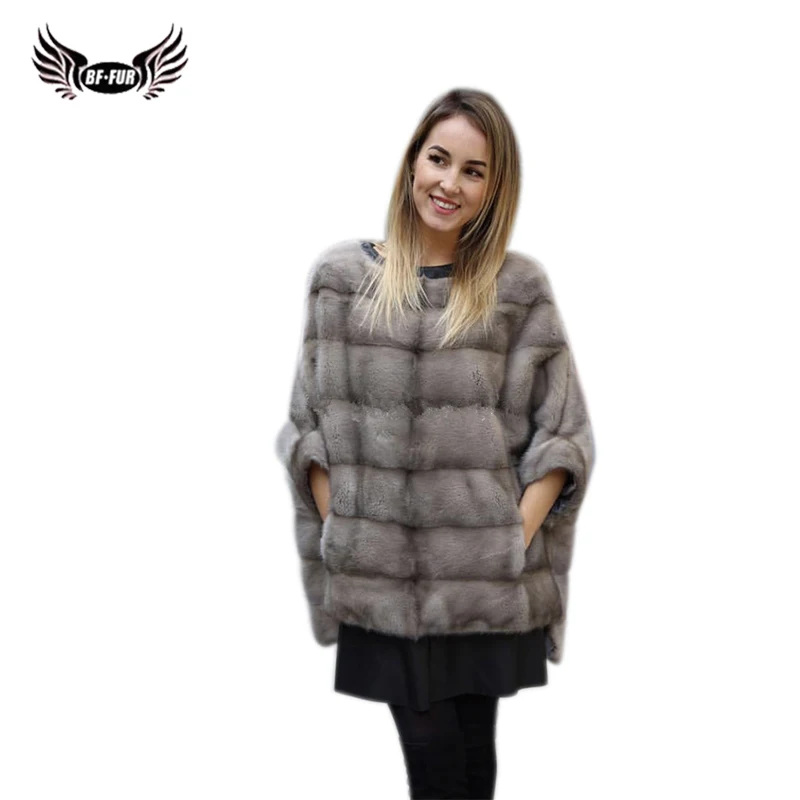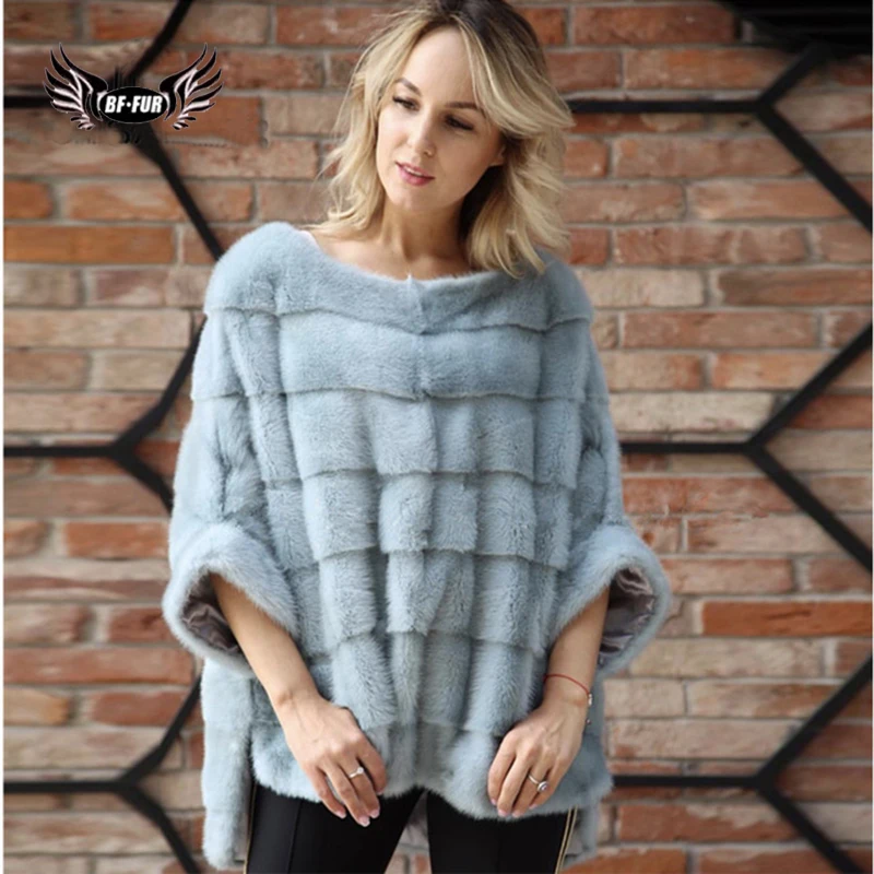 Images of BFFUR Luxury Woman Real Mink Fur Coat Genuine Poncho Natural Winter Female Jacket Full Pelt Real Fur Cape Shawl Coat Mink Coats :