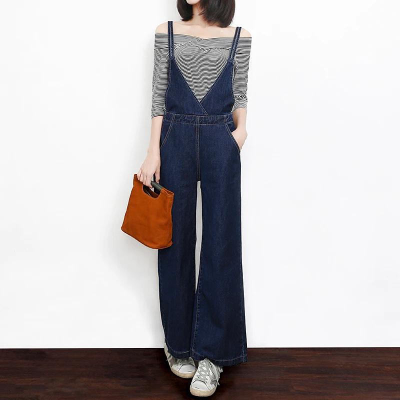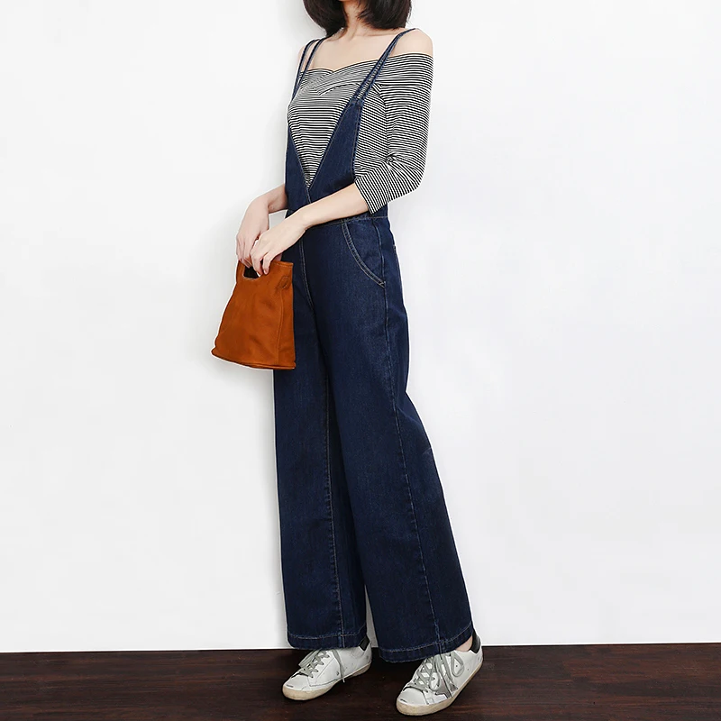 Best Offer Free Shipping 2019 New Fashion Long Pants Jumpsuit And Rompers Denim Bib Pants Summer Casual Loose Trousers Spaghetti Strap S-XL