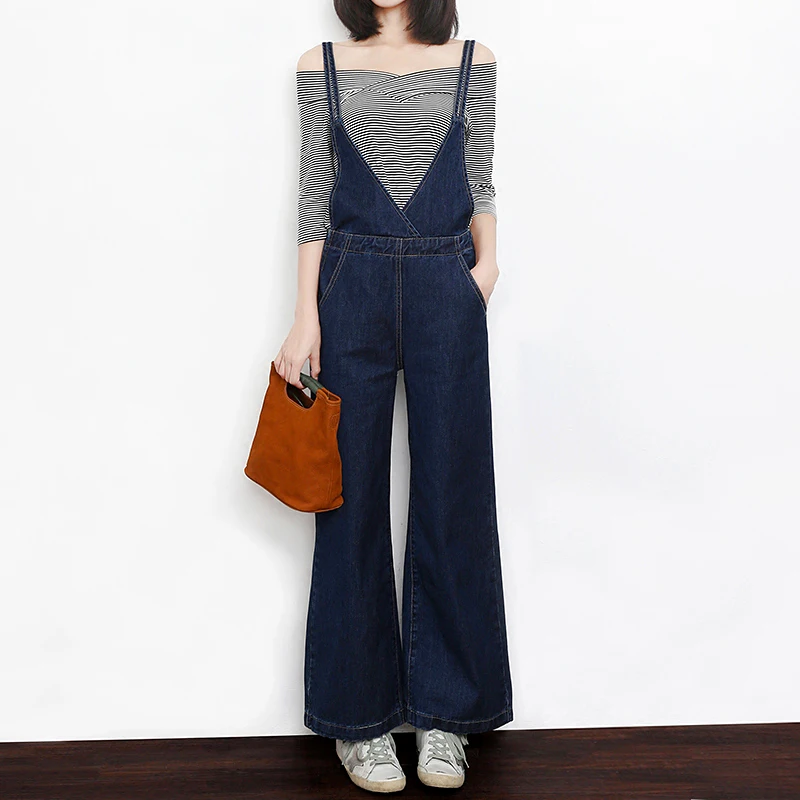Images of Free Shipping 2019 New Fashion Long Pants Jumpsuit And Rompers Denim Bib Pants Summer Casual Loose Trousers Spaghetti Strap S-XL :