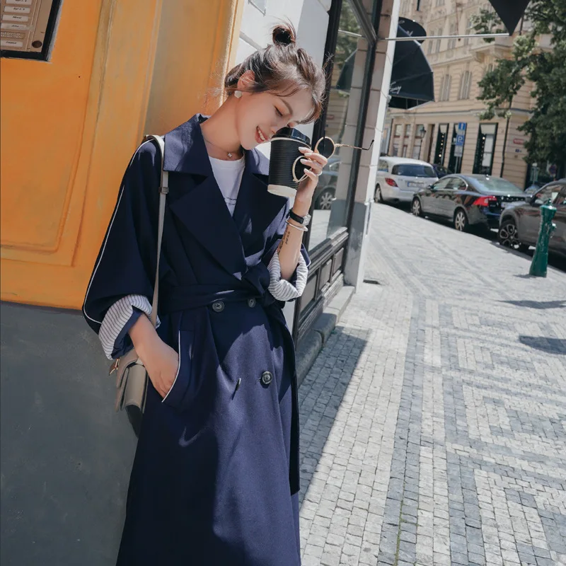 New Women's Loose Large Size Thin Long Trench Coat 2020 Spring New Style Striped Trench Coat Women