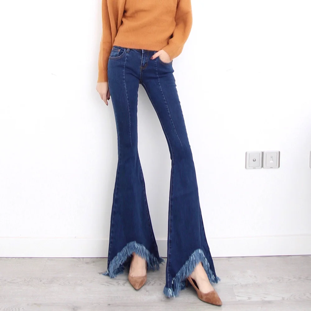 Images of Free Shipping 2019 Fashion Long Jeans Pants For Women Flare Trousers Plus Size 24-32 Size Denim Summer And Autumn Tassels Jeans :