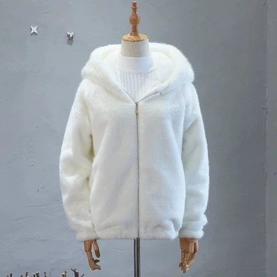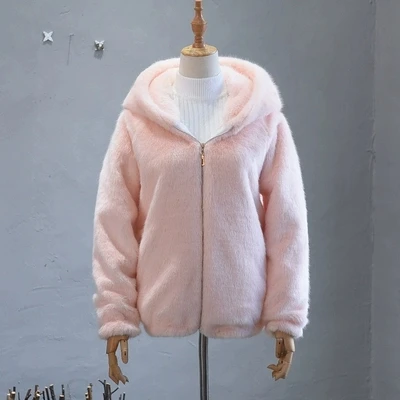 Sale Free Shipping Women Loose Mink Fur Jacket with a hood