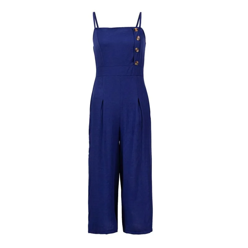 Sale Women\'s Fashion Backless Sleeveless Fashion Button Casual Women Jumpsuits Wide Long Pants Jumpsuit Rompers