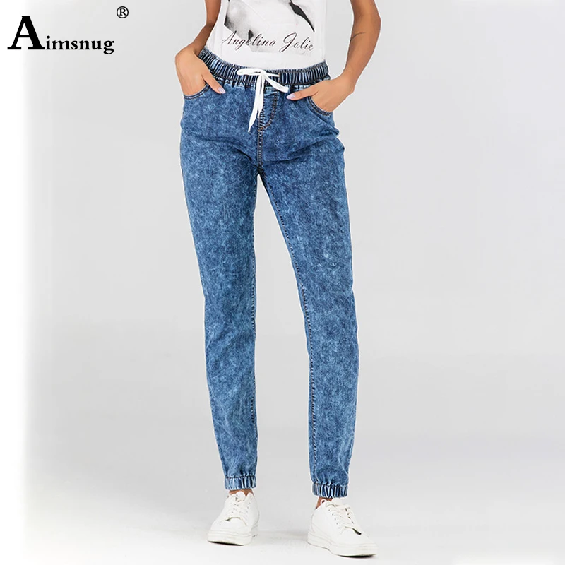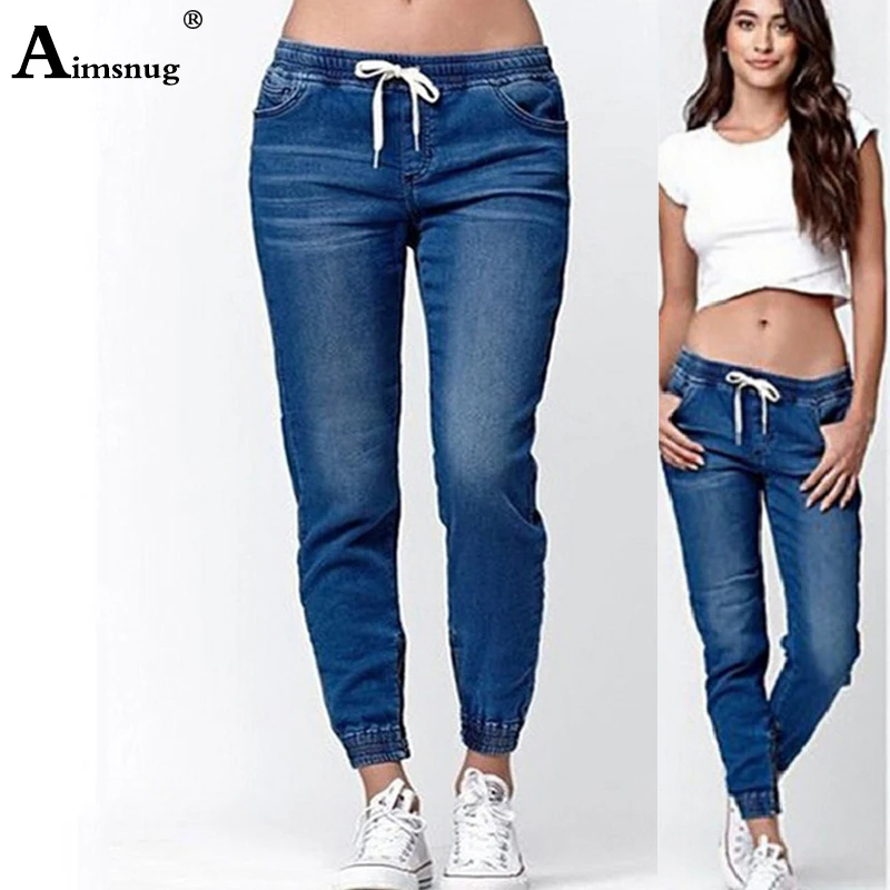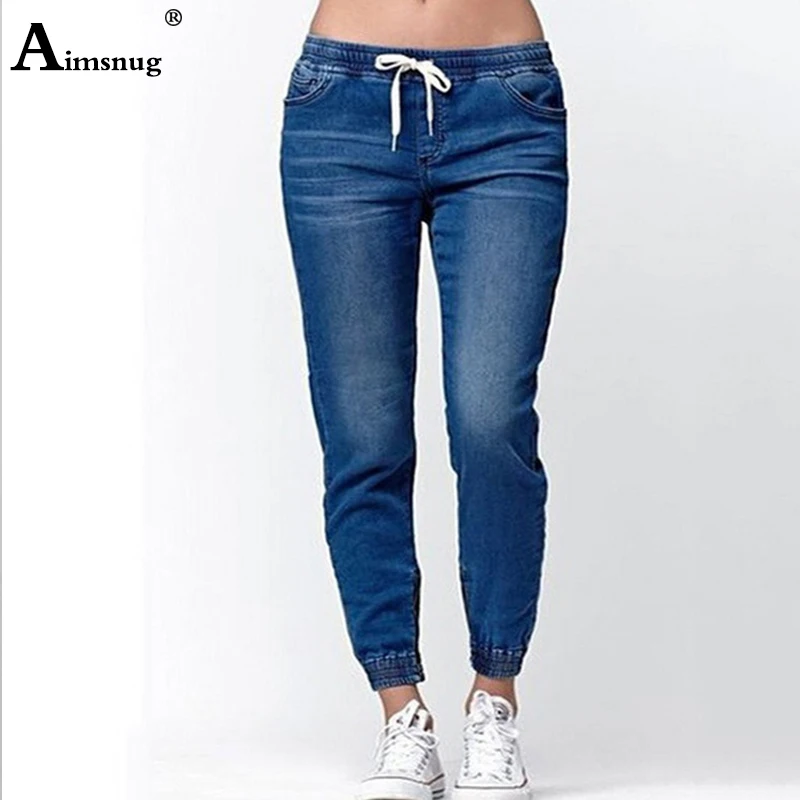 Buy Plus size S-5XL Summer Women Denim Trousers Ladies Long Pants Overalls boyfriend Jeans Elastic Waist Lace-up Female Jeans Pants