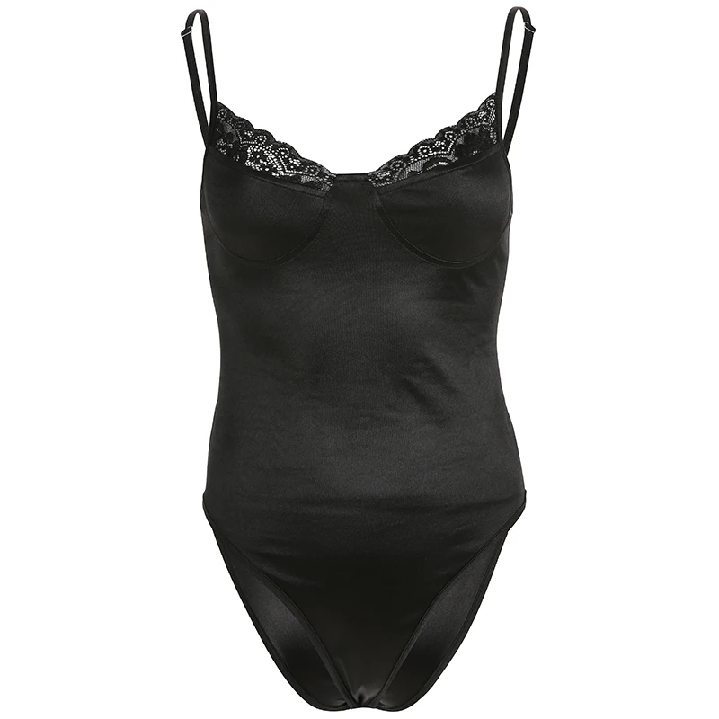 Images of Stain V Neck Black Lace Bodysuit Women Sexy Summer Body Femme Patchwork Romper Skinny Ladies Elegant Jumpsuit :