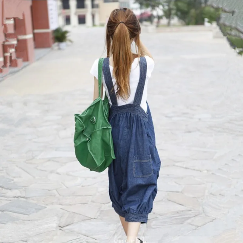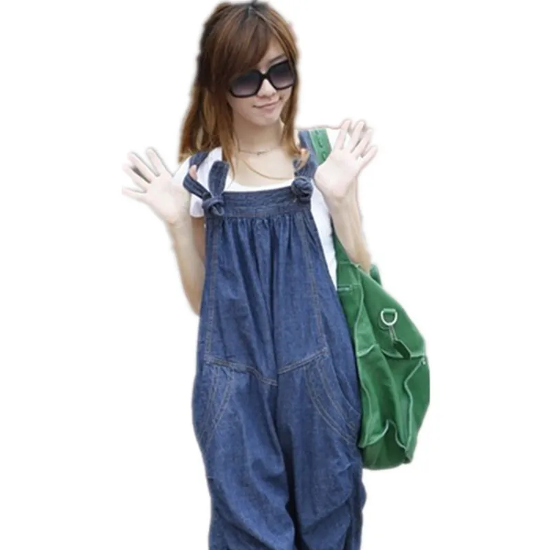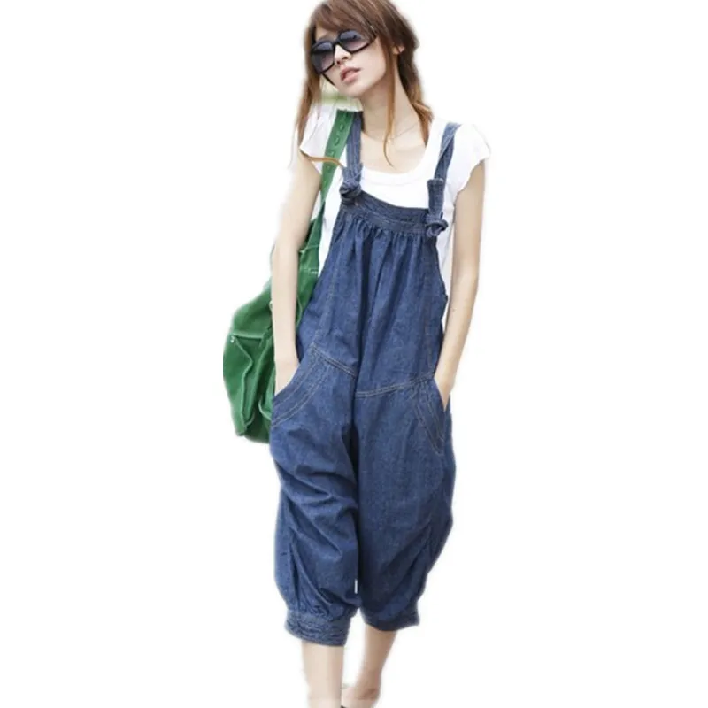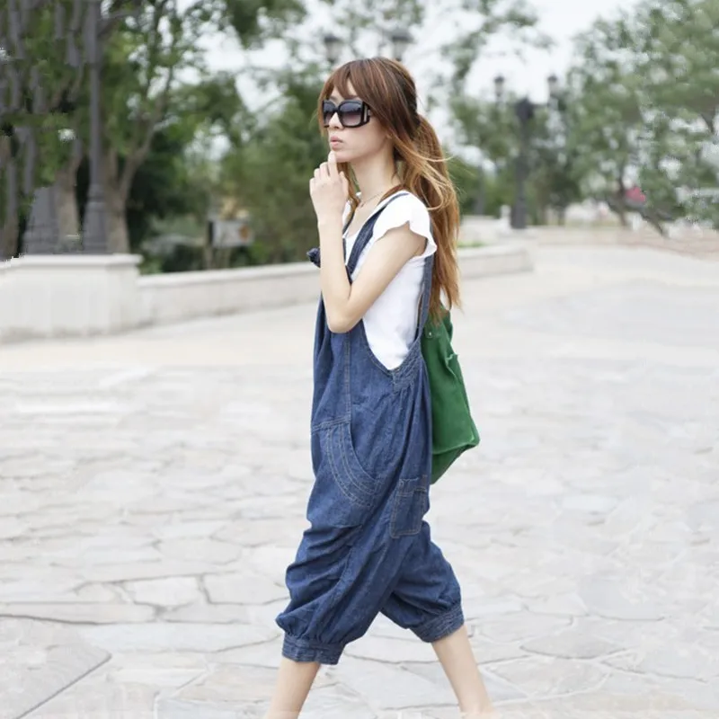 Images of Free Shipping 2014 New Fashion Loose Casual Denim Bib Pants Harem Jumpsuit And Rompers Summer Plus Size Jeans Capril With Pocket :